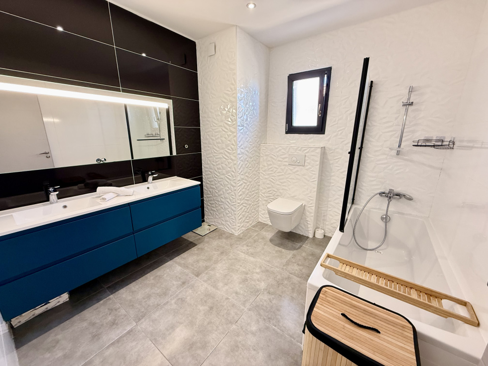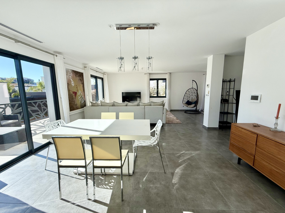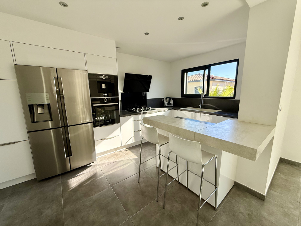 L'agence ESSENTIELLE a le plaisir de vous présenter en EXCLUSIVITE sur la commune de Grabels, cette villa contemporaine récente. Édifiée sur un terrain de 403 m², la maison offre une surface habitable de 149 m², complétée par un sous-sol entièrement aménagé de 105 m². Au rez-de-chaussée, vous découvrirez un vaste séjour lumineux avec cuisine américaine entièrement équipée, offrant la possibilité d’aménager une chambre supplémentaire. Un cellier ainsi qu’une salle d’eau avec douche à l’italienne et un WC complètent ce niveau. À l’étage, l’espace nuit se compose de trois belles chambres (13 m², 13 m² et 17 m²) avec grands placards ou dressing. Vous y trouverez également une salle de bain et un WC. Le bien dispose également d’un garage carrelé avec porte motorisée, ainsi que d’équipements de confort tels qu’un ballon thermodynamique et un adoucisseur d’eau. Le sous-sol aménagé de 105 m² offre de nombreuses possibilités : salle de sport, home cinéma, espace détente… avec la possibilité d’y créer une salle d’eau supplémentaire. À l’extérieur, vous profiterez d’un agréable espace avec piscine en pierre de Bali au sel et d'une pergola bioclimatique, Belles prestations : Climatisation gainée dans toute la maison, Volets roulants électriques Une villa clé en main, idéale pour une vie confortable dans un cadre moderne et fonctionnel. DPE B, Le prix indiqué comprend les honoraires à la charge du vendeur. Vidéo sur demande. English speaking agency